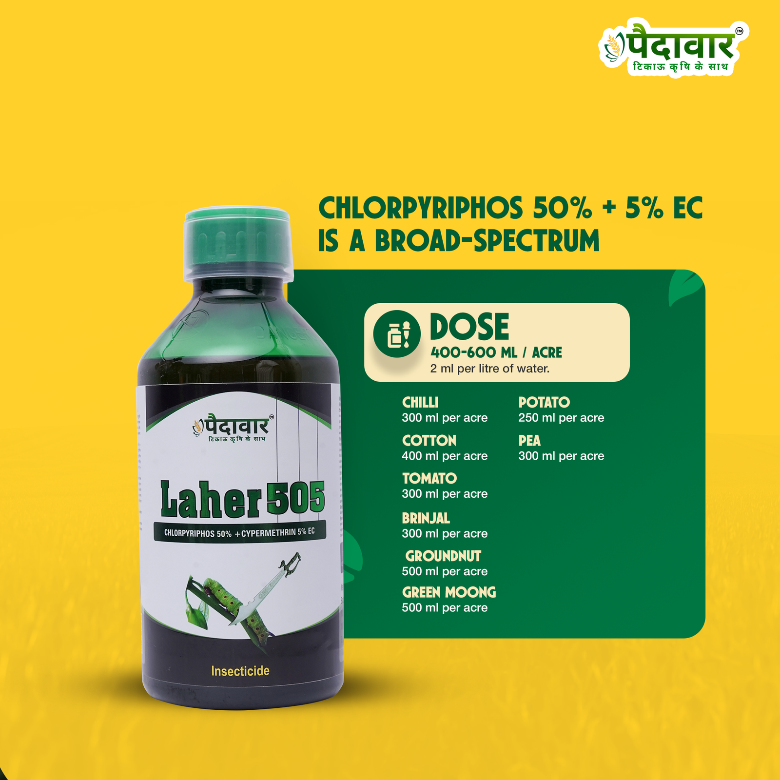 Paidavaar Laher 505 Insecticide - Chlorpyriphos 50% + Cypermethrin 5% EC